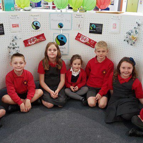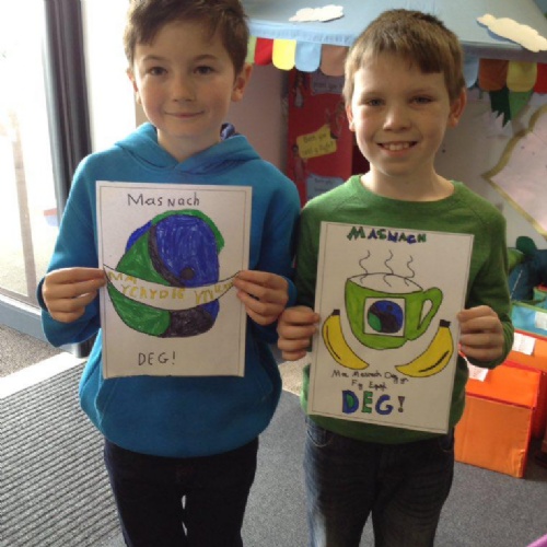 Dyma ni! Ni ydy’r Pwyllgor Eco ar gyfer eleni. Mae’r pwyllgor yn cwrdd yn rheolaidd i drafod materion yn ymwneud gyda’n hamgylchfyd sydd yn bwysig iddyn ni. Mae Miss Holley a Miss Davies yn helpu ni i benderfynu ar dargedau newydd i’r ysgol ac rydym ni wedi derbyn y faner werdd ysgolion eco! Rydyn ni'n falch iawn, edrychwch am y faner os ydych yn ymweld a'r ysgol.