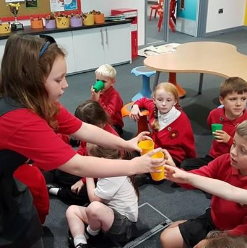 Here we are! We are the school’s Eco-Committee for the year. The committee meets regularly to discuss matters concerning the environment that are important to us. Miss Holley and Miss Davies helps us decide on our new targets and we have received the green eco schools flag and we are very proud of our achievements. If you are visiting the school keep an eye out for our green flag.